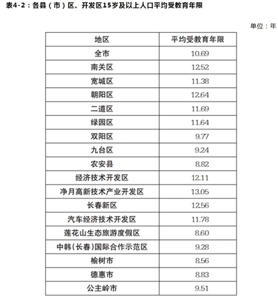 平均受教育年限——与2010年第六次全国人口普查相比,全市常住人口中,15岁及以上人口的平均受教育年限由9.90年上升至10.69年。