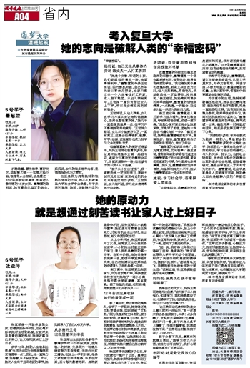考入复旦大学她的志向是破解人类的“幸福密码”