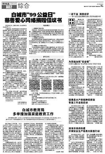 白城市“99公益日”慈善爱心网络捐赠倡议书