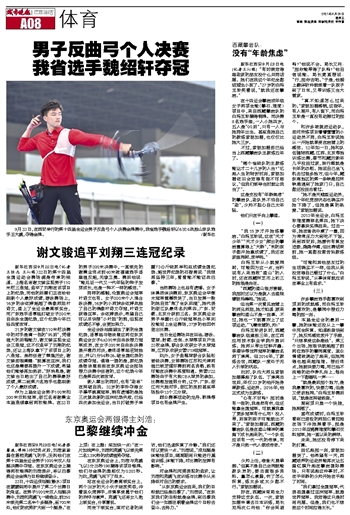 男子反曲弓个人决赛 我省选手魏绍轩夺冠