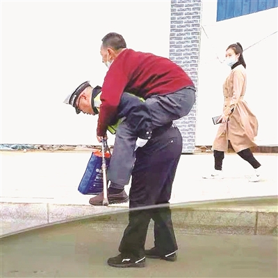 10月10日16时40分许,辽源市公安局交警支队龙山大队一中队辅警刘利强在中医路口执勤时,发现有一位老人因身体原因无法行走。经询问,老人的家人都在长春打工,自己一个人在辽源居住。想乘坐公交车回家时,发现因天气变化,腿脚不好使。在和老人沟通,确认不需要医疗救治后,刘利强背起老人,将其送至公交站点。 |