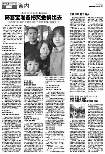 高喜宝准备把奖金捐出去