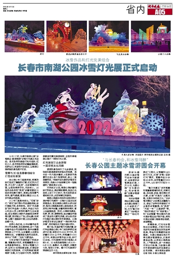 10日17时,长春市南湖公园“冰雪奥运·醉美南湖”冰雪灯光展正式启动。各式各样的造型灯流光溢彩,红红火火,各式样各样的冰雕晶莹剔透,如梦似幻,两者的巧妙结合,让南湖公园夜晚的景色美不可言。