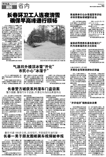 长春环卫工人连夜清雪 确保早高峰通行顺畅