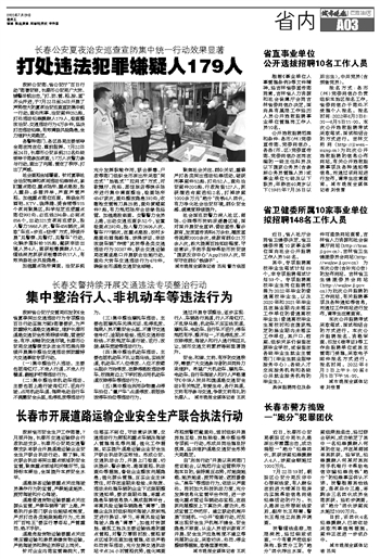 按照公安部、省公安厅“百日行动”部署安排,长春市公安局广大民、辅警尽锐出击,“打、防、管、控、服、宣”齐头并进,于7月22日至24日开展了声势浩大的夏夜治安巡查宣防集中统一行动,查处刑事、治安案件252起,打处违法犯罪嫌疑人179人,检查整改治安、交通违法行为4万余件,坚决打击违法犯罪,有效清除风险隐患,全力维护大局稳定。