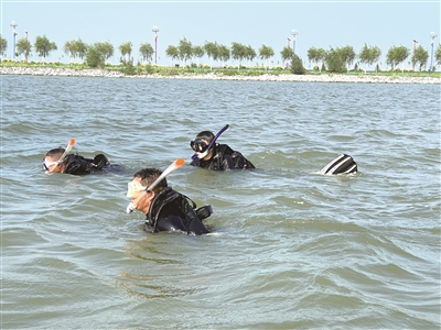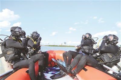 截至目前,培训已顺利完成1000米蹼泳、400米游泳、35米屏气潜泳、潜水员(着装全套水肺装备)游动25米、2米水下拖带无意识潜水员出水、水面拖带25米并实施救援呼吸、全面镜的使用(陆上、水面、水下)、检查、组装、着装、半面镜换全面镜、全面镜换半面镜、下潜、排水、上升、中性浮力游动、干衣着装、合理配重、中性浮力检查、下潜上升、倒立位置扶正(团身滚翻或下潜至池底抬头扶正)、进气阀卡住,并自动供气(拔出中压管)、排气阀无法排气(袖口排气)、浮力调节器保持较小空气量、中性浮力游动中身体360度转动和滚动等训练科目。现正在全省水域最深、面积最大的开放水域“查干湖”开展实战技能科目训练,逐步探索各类复杂条件下的救援技术,最大限度提升队伍实战救援能力。
