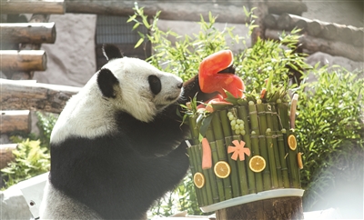 当日,莫斯科动物园为来自中国的大熊猫“如意”和“丁丁”庆祝生日。雄性大熊猫“如意”2016年7月31日出生于中国四川雅安碧峰峡基地,雌性大熊猫“丁丁”2017年7月30日出生于中国四川卧龙神树坪基地,它们于2019年4月29日抵达莫斯科,开启为期15年的旅居生活。新华社记者 孟菁 摄