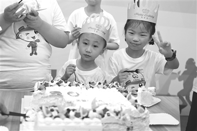 8月1日,“小候鸟”在集体生日会上品尝蛋糕。