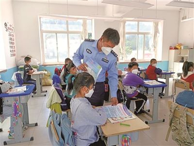 近日,白山边境管理支队八道沟边境派出所民警到辖区中、小学校开展边境政策法规宣传,培养青少年爱国戍边情怀。 城市晚报全媒体记者 吕闯 警方供图