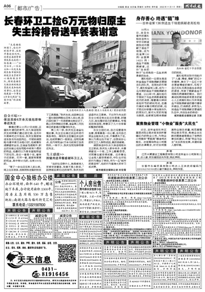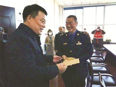 11月1日,长春市城市管理局党组书记、局长王世忠看望了“见义勇为”“拾金不昧”的孙海宽和张庆友,并发放慰问品、慰问金。