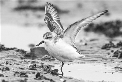 12月5日在海南省儋州市一处湿地拍摄的勺嘴鹬。