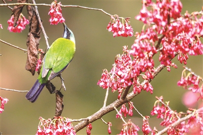 春回大地,万物复苏。鸟儿在花丛中觅食休憩,一派生机勃勃的春日景象。新华社发 王罡 摄