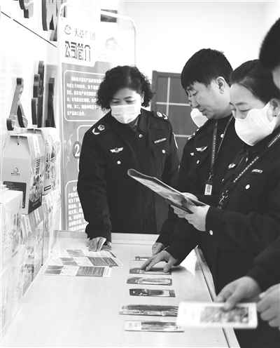 春耕在即,通榆县农业综合行政执法大队执法人员对经营场所销售的种子、化肥、农药的包装、生产许可证、农资经营备案情况及产地进行了一次详细检查,同时查看了农资经营台账是否健全规范、农资经销商是否销售伪劣农资等情况,严防不合格农资产品流入市场。 图为执法人员在检查中。 记者 李晓明 摄