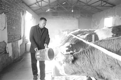 洮南市蛟流河乡农民李东波有着多年的养牛经验,目前有牛50余头,每年收入10余万元,带动周边6户农民发展养牛业,受到农民的好评。 记者 张殿文 摄