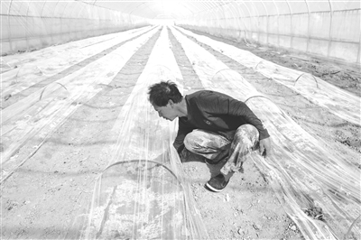 近年来,洮南市黑水镇为把“黑水西瓜”这块金字招牌擦亮,鼓励瓜农利用暖棚种植早季西瓜,让西瓜提前进入市场,帮助瓜农增加收入。图为瓜农在暖棚里查看瓜苗长势。邱会宁 范海辉 摄