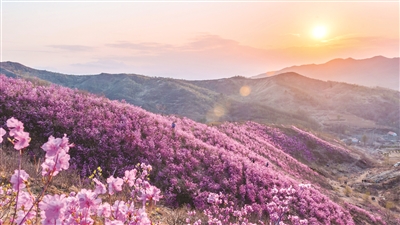 4月20日在岫岩满族自治县黄岭村映山红景区拍摄的映山红。近日,在辽宁省岫岩满族自治县黄岭村映山红景区,近千亩映山红竞相开放。新华社记者 杨青 摄