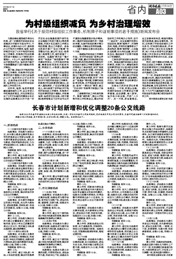 长春市计划新增和优化调整20条公交线路