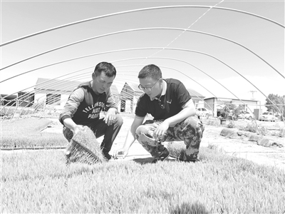 农科院连续34年派驻水稻专家在镇赉县开展科研和帮扶工作,在盐碱地治理、新品种研发、配套种植技术实验等方面取得了突出成绩,助力镇赉成为了吉林省水稻生产第一大县。图为省农科院水稻研究所副研究员马巍(右)在农户家里进行指导。潘晟昱 摄