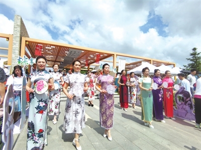 旗袍快闪同步上演,一队身穿旗袍爱好者在歌声里款步走来,优美的舞姿吸引了不少市民和游客驻足观赏。吉林省文化馆文艺部副主任李阳表示,组织这些活动,就是让传统文化走进群众,让市民与游客沉浸式体验传统文化与端午习俗带来的美妙。