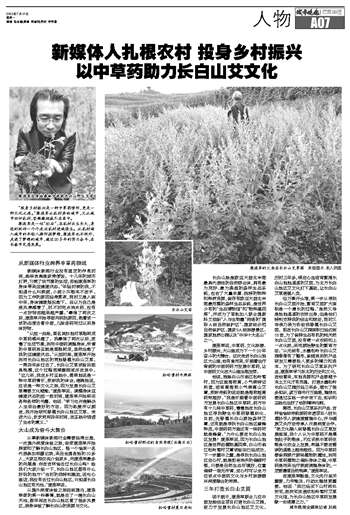 “从那一刻起,莫名其妙地对草根树皮中草药感兴趣了。我晕倒了两次以后,放慢了生活节奏,利用中医药调理身体,所谓的中草药其实就是草根树皮,居然治愈了我的亚健康状态。”从那时起,康连军开始利用长白山地区的荒地移植长白山艾草。一晃四年多过去了,长白山艾草试验田粗具规模,这个过程苦辣酸甜咸尽在其中。“这几年,我在乡村实践中,简单地说是一种中草药情怀,按照我的体会,准确地说,应该是一种文化之旅,因为发展长白山艾草需要文化赋能。”康连军说。调整身体亚健康状态的那一段时间,康连军开始购买各种各样的书籍。他说:“学习也许是解决人生低谷最好的方法。因为热爱所以痴迷,我开始研究移植长白山地区艾草。走进大山,坎坎坷坷四年时间,在实践中悟透了生命的意义。”
