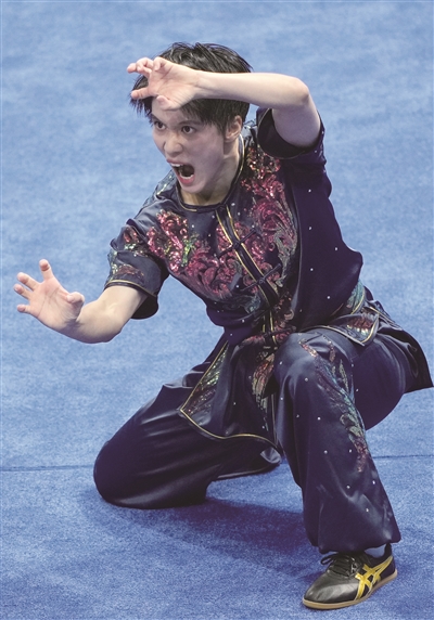 9月26日,陈惠颖在南拳比赛中。 当日,在武术项目女子南拳南刀全能决赛中,中国选手陈惠颖以19.590分的成绩夺得冠军。新华社记者 李一博 摄 |