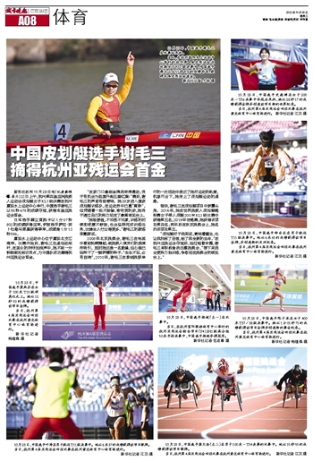 中国皮划艇选手谢毛三摘得杭州亚残运会首金