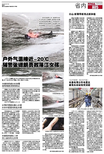 通化市入冬不久,此时江面上的冰层非常薄,给救援带来了极大难度,水性较好且当过兵的辅警张塬朗果断做出决定——趴在冰面上匍匐前进,慢慢靠近女孩。
