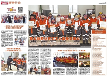 12月17日9时30分,在长春市人民大街和宽府路交会处附近,环卫工人正在来回忙碌着,本报爱心物资的送达,让他们在寒风中收到满满的暖意。