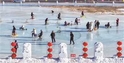 2023年12月29日,由白城工业园区管委会、白城生态文化旅游促进中心主办,白城市胜利冰雪乐园承办的吉林白城工业园区首届冰雪节正式启动,标志着白城市区最大的冰雪乐园开园了。园内的冰雪项目有单双人冰车、冰上自行车、冰上悠悠车、雪地摩托车等,还有供市民观赏的冰雕作品等。 记者 李晓明 摄