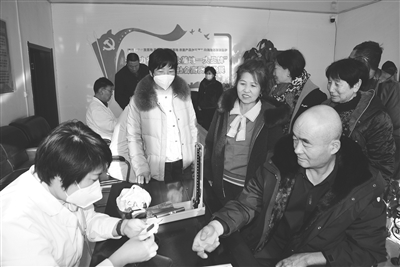 通榆县良井子畜牧场有限公司把关爱职工健康作为重要工作来抓,近日,他们邀请县红十字医院专家及医护人员为公司职工免费进行健康体检和健康知识讲座,让职工深切感受到来自公司的关爱。图为医生正在给职工测血糖。陈宝林 摄