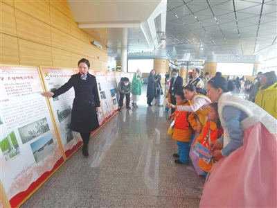 1月10日,从广西南宁出发到东北的“小砂糖橘”圆满地完成了研学任务,从长春机场乘机返回广西,长春机场为他们举办了一场特殊的送别仪式,带领他们参观了“我是抗联小战士”流动展览。