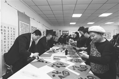1月24日,“我们的中国梦——万福迎春”文艺志愿服务活动走进平阳社区。多位书法家参加活动,现场为社区居民书写春联、“福”字。