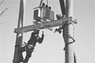 通榆县抢抓春耕前农田建设“黄金期”,加强统筹协调,科学规划设计,全力推进高标准农田项目建设。图为十花道乡光辉村高标准农田建设项目施工现场,施工单位正在安装电力设备。 陈宝林 摄