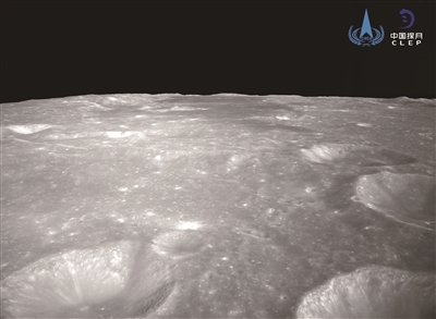 | | |  |  | 嫦娥六号着陆器降落相机拍摄影像图1。 图1由降落相机刚开机时拍摄,图像显示拍摄的月背区域中下部和右部分布有多个十多公里直径的环形坑,拍摄的月背区域上部中间为暗色的玄武岩分布区。